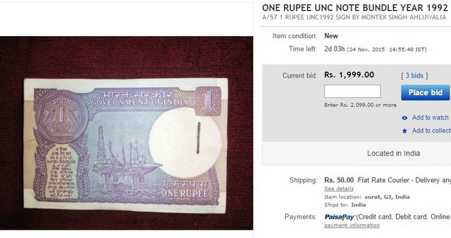 1 rupee note