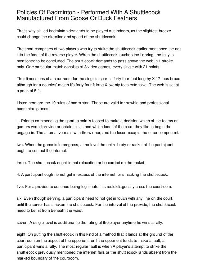 10 rules of badminton