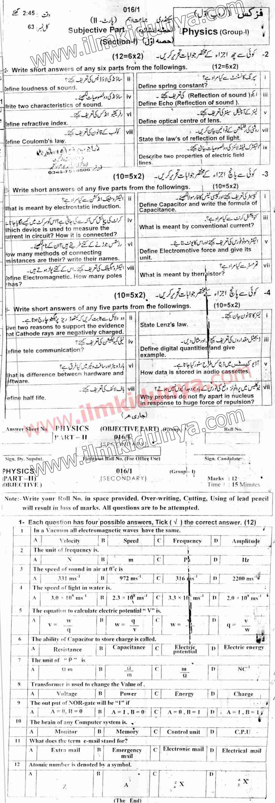 10th class past papers