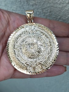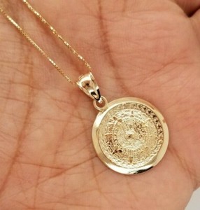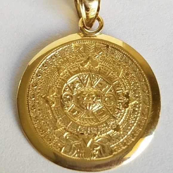 14k gold aztec calendar pendant