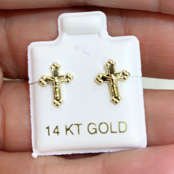 14k gold cross earrings