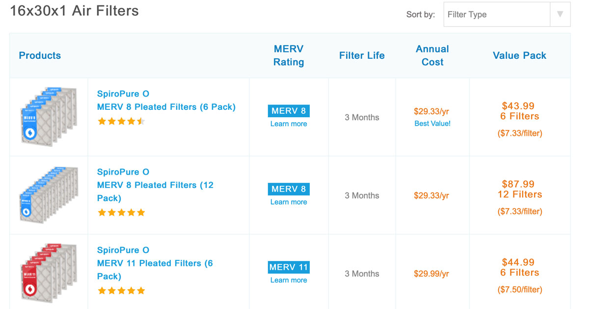 16x30x1 air filter
