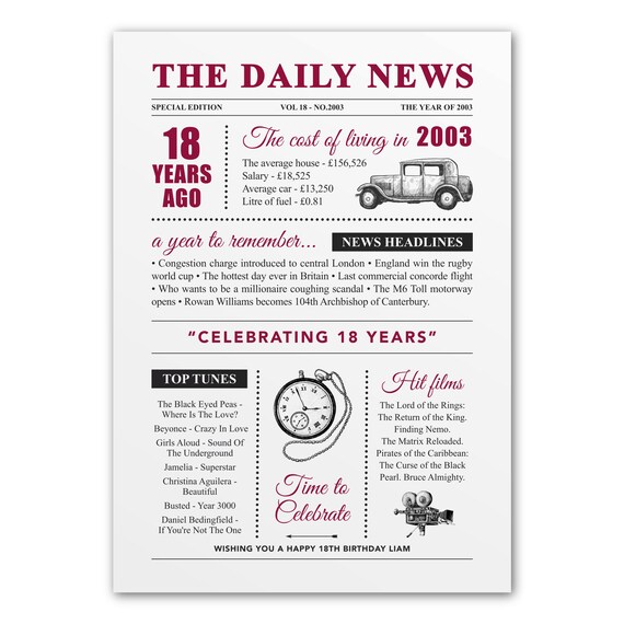 18th birthday personalised gifts