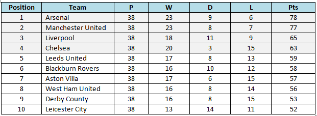 2002 premier league table