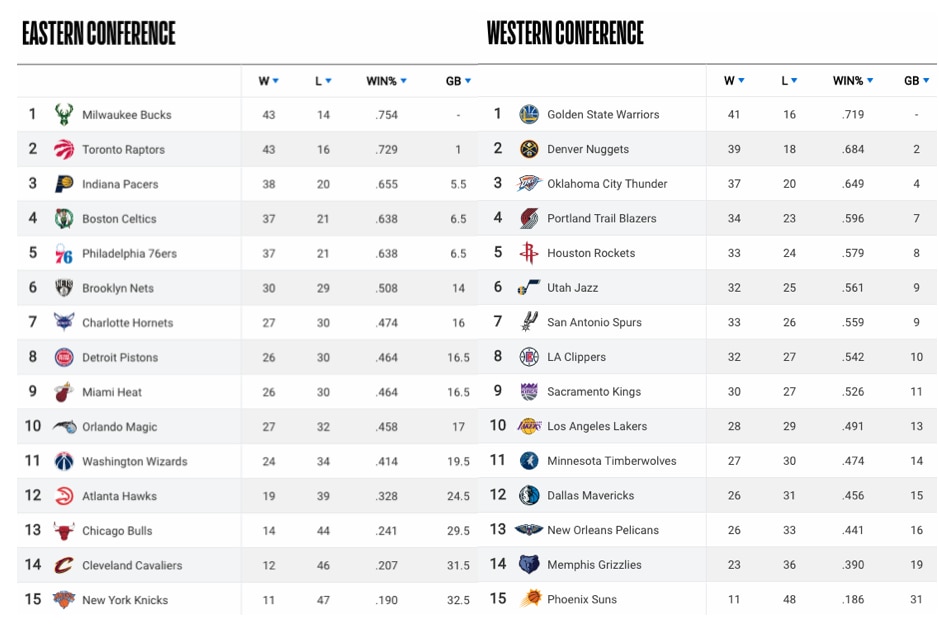 2018 nba standings