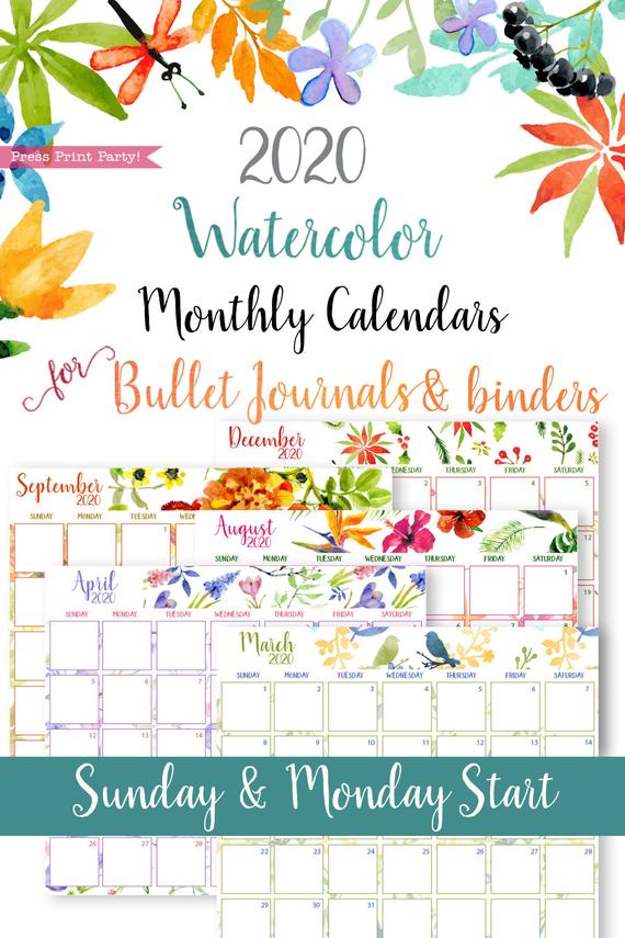 2020 monthly calendar printable