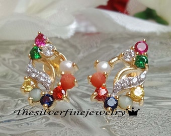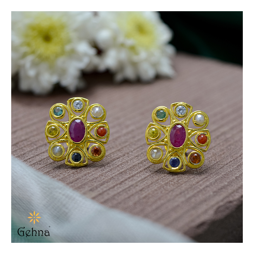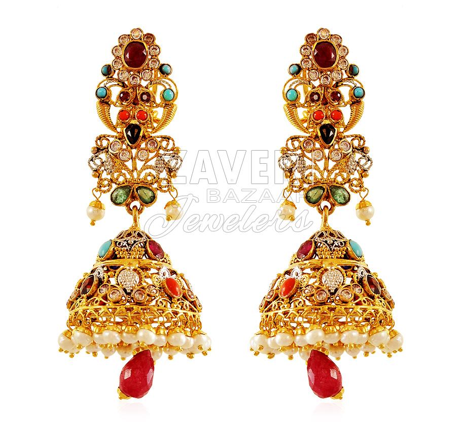 22k gold navratna earrings