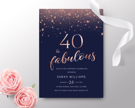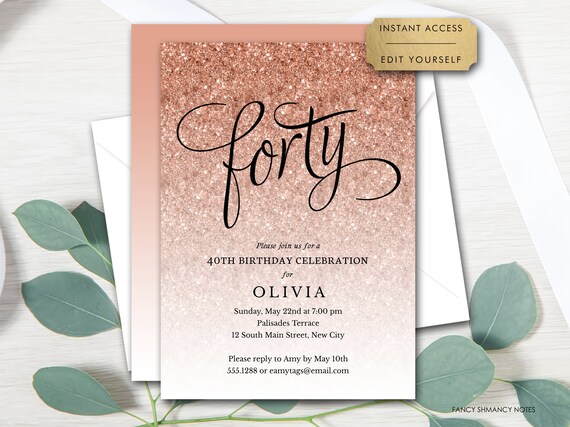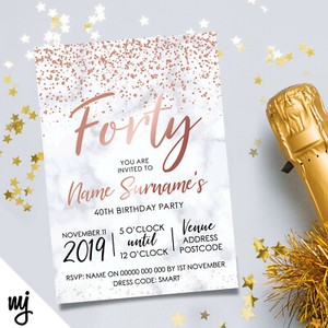 40th birthday invitations rose gold