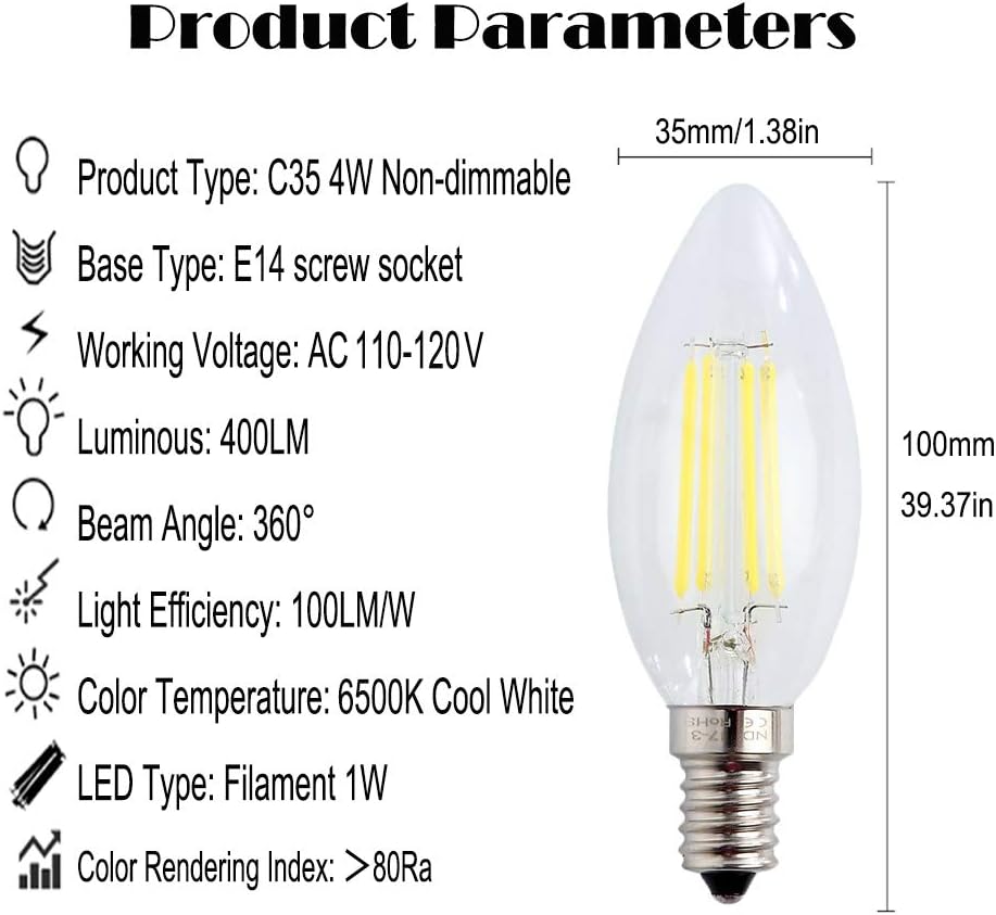 4w led edison screw candle bulb