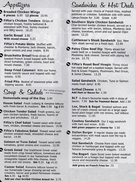 50 s diner menu