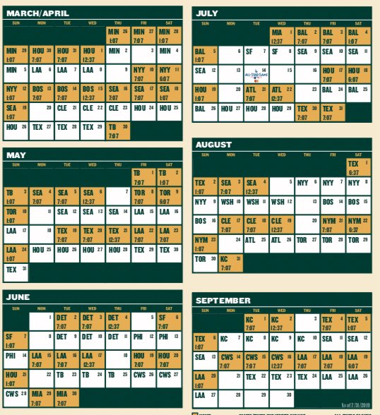 a's schedule