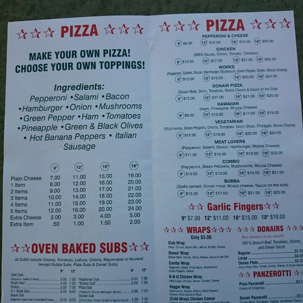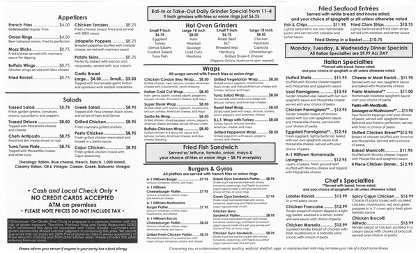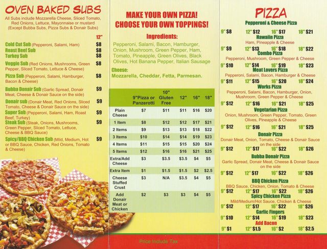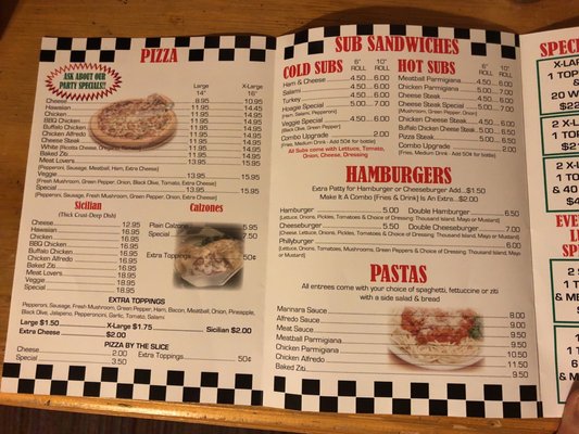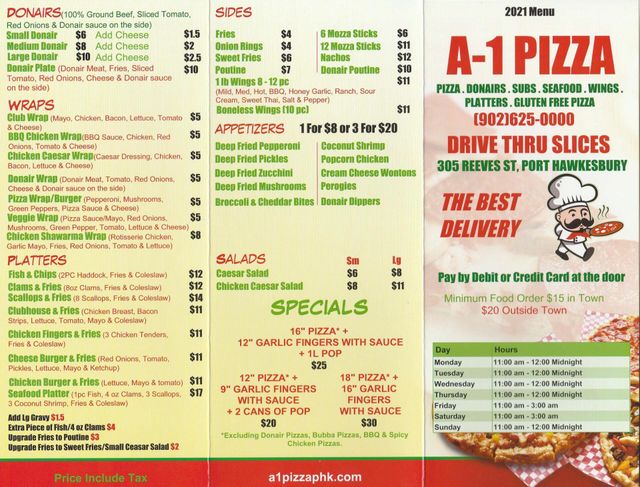 a1 pizza menu