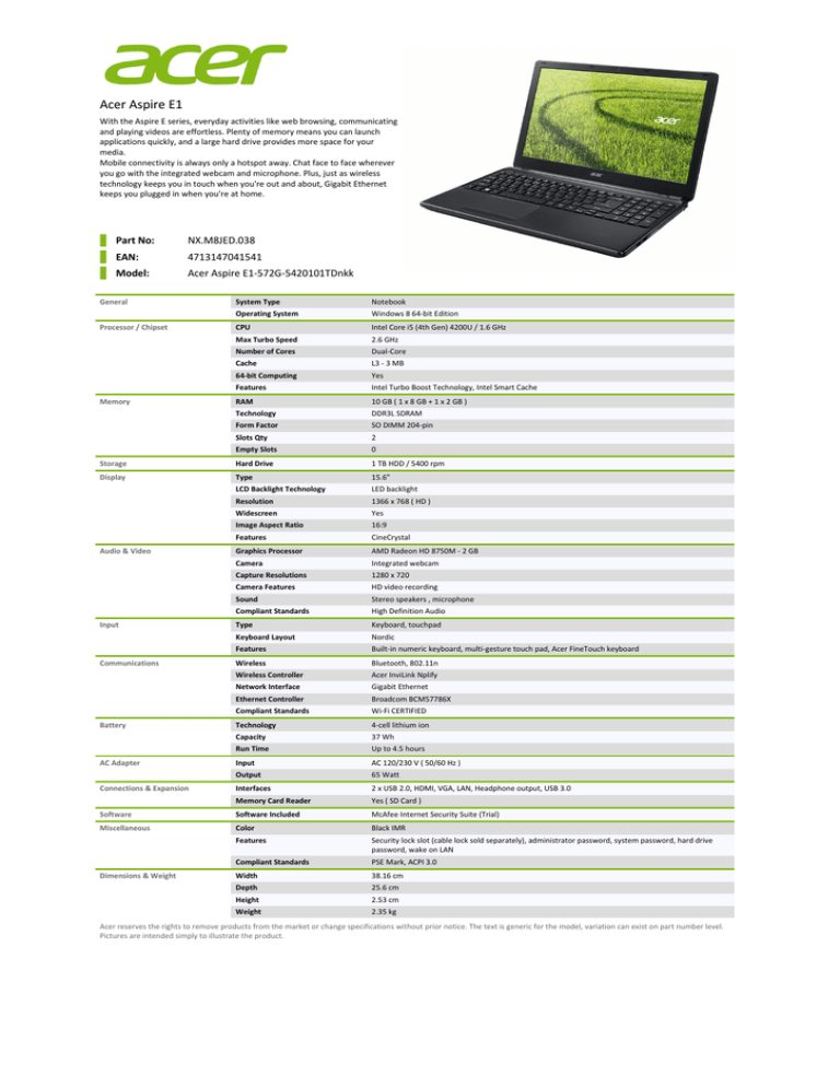 acer aspire e1572g
