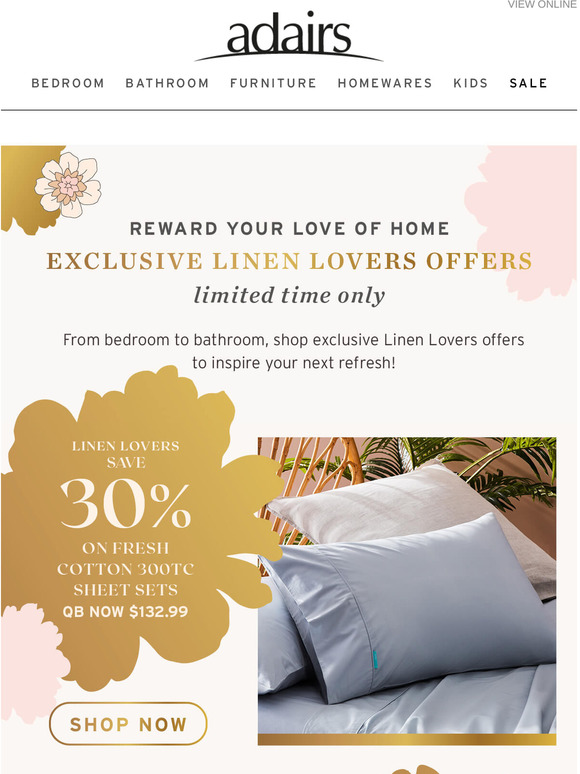 adairs linen lovers