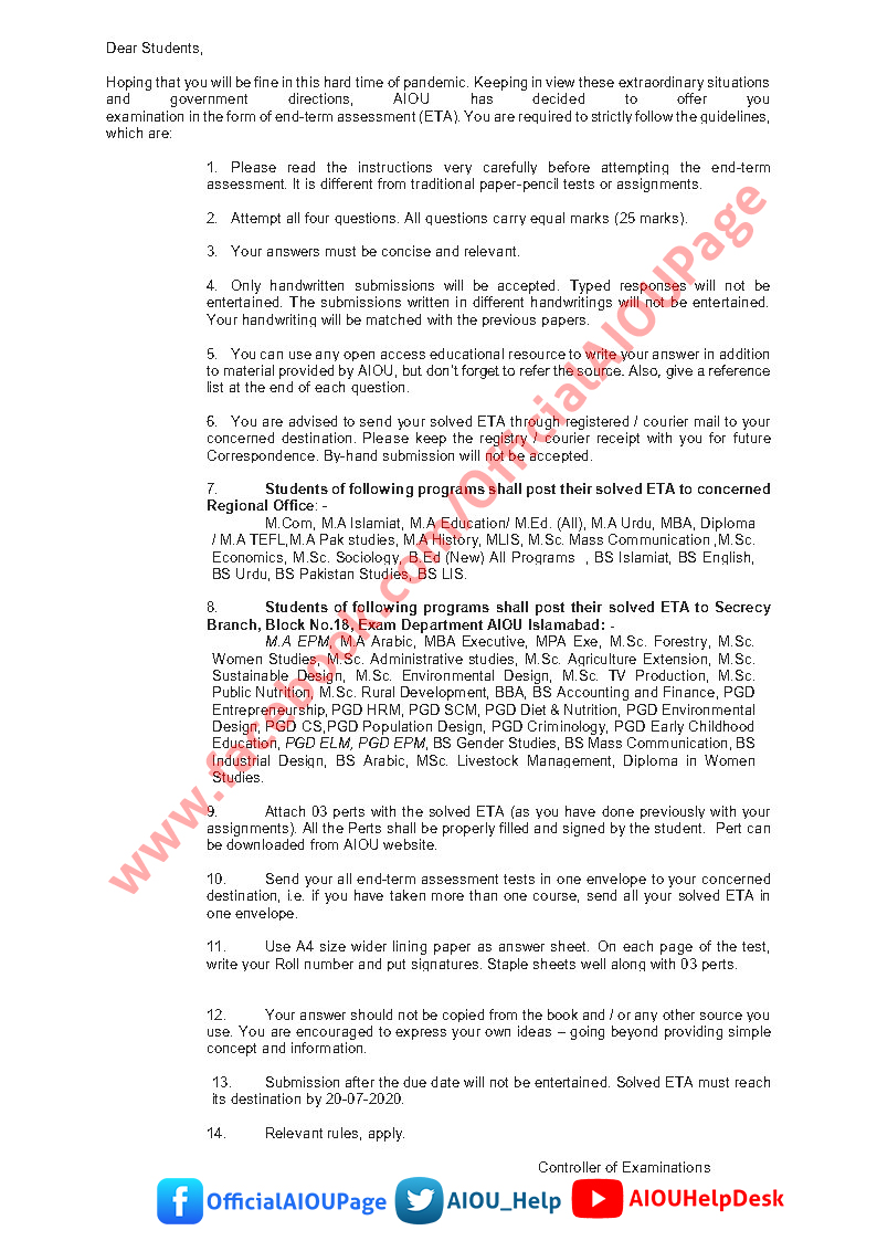 aiou a4 size paper