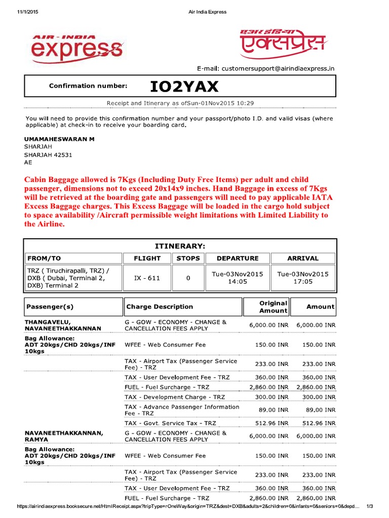 air india excess baggage