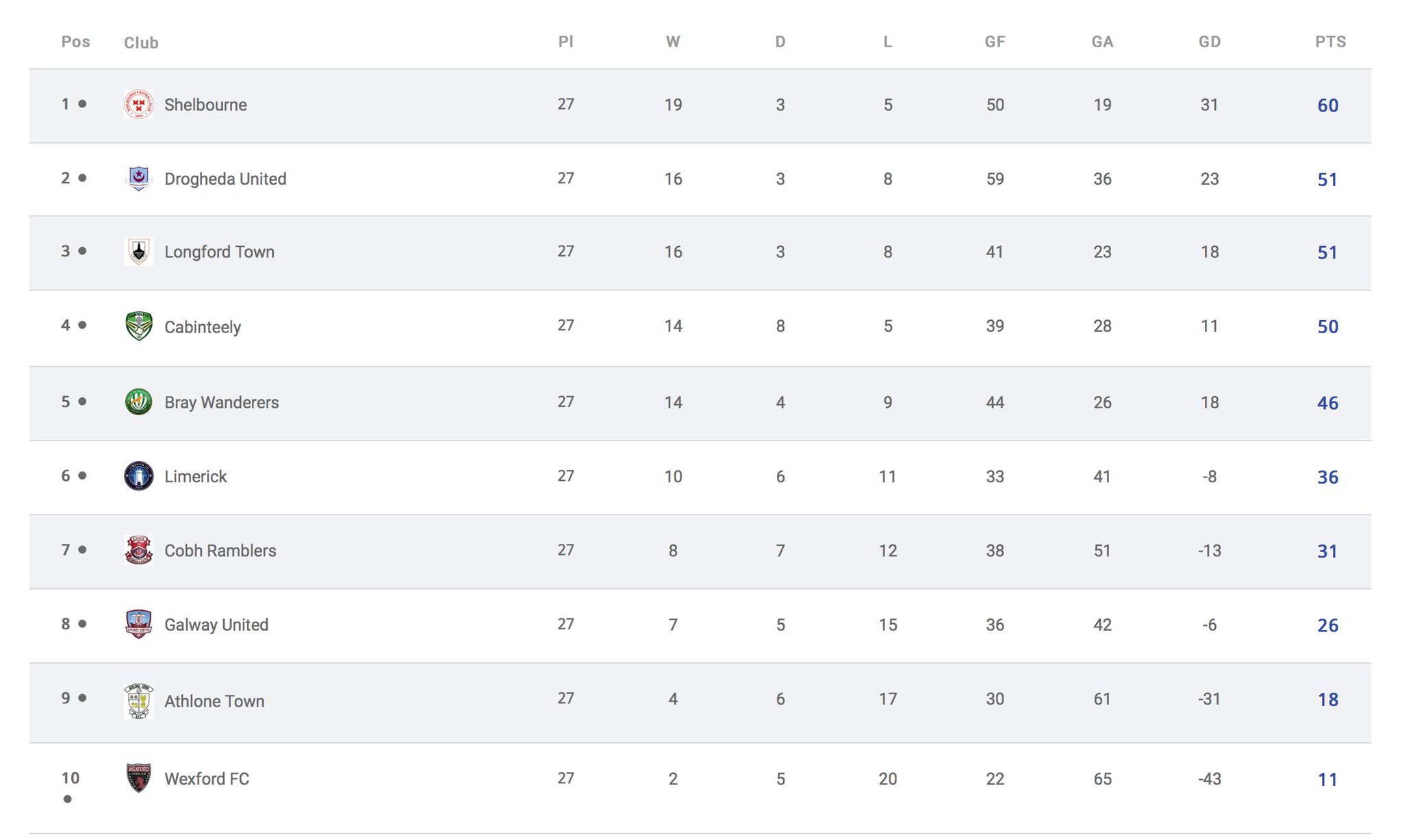 airtricity league table
