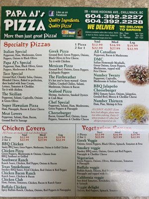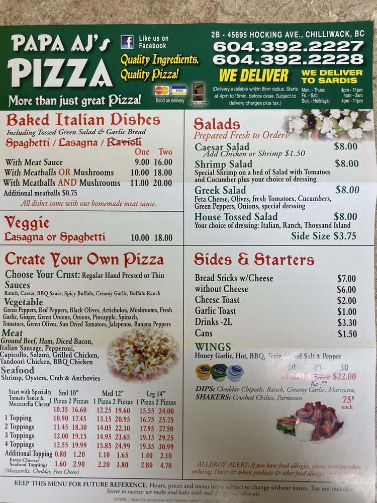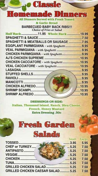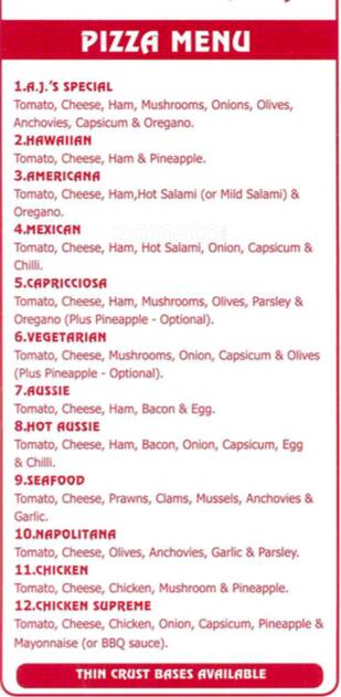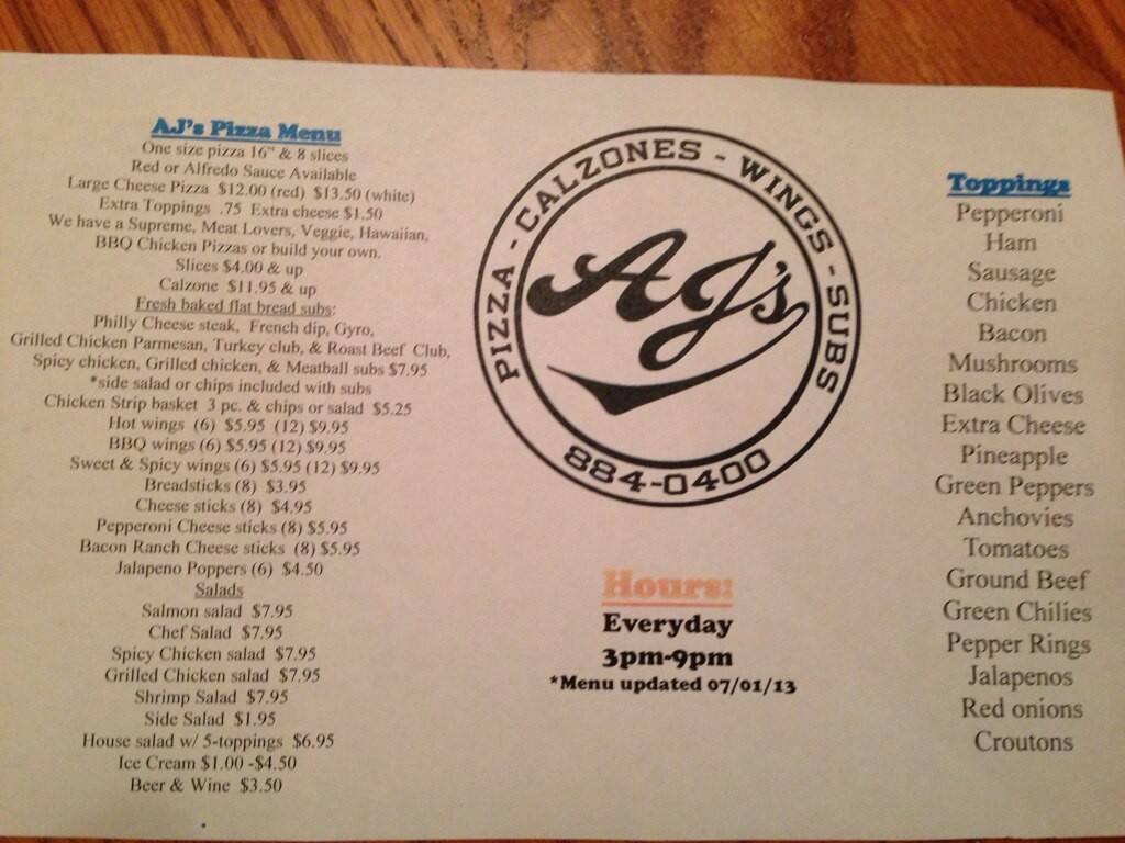 aj's pizza menu