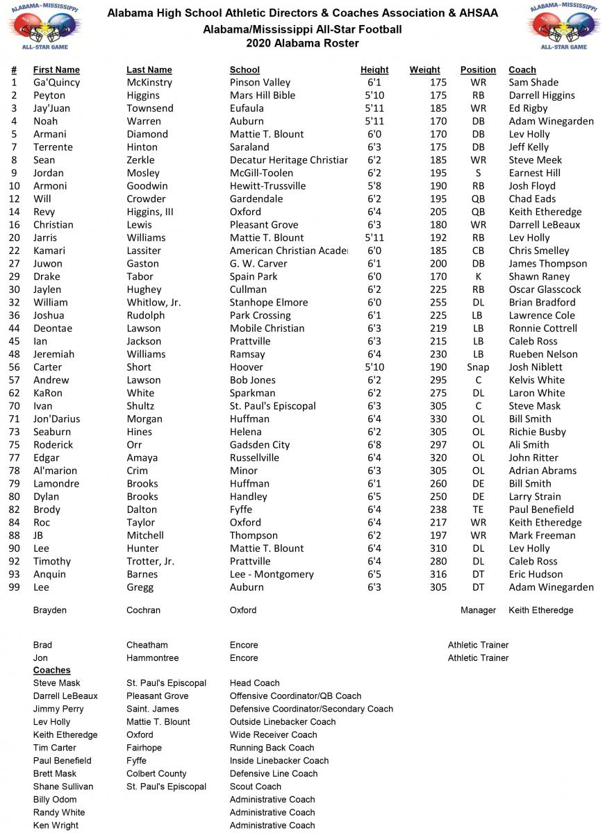 alabama football roster 2020