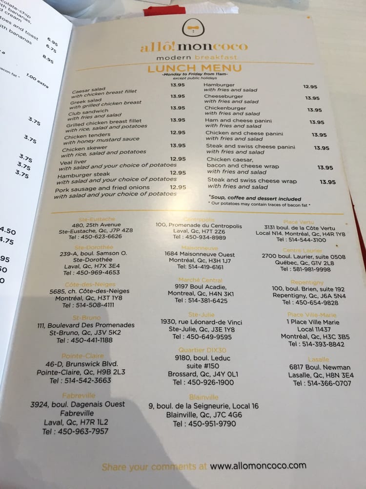 allo mon coco menu
