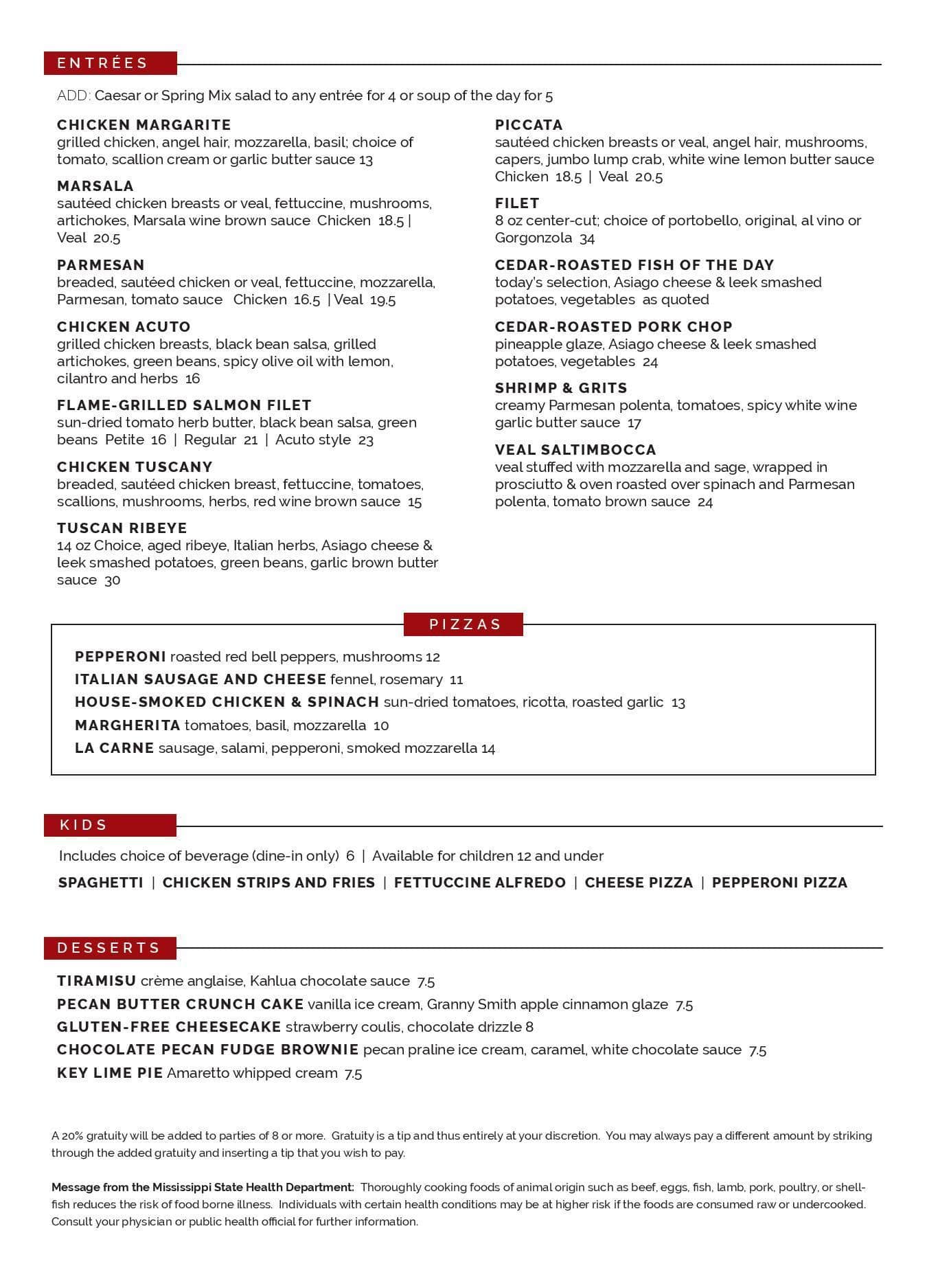 amerigo menu