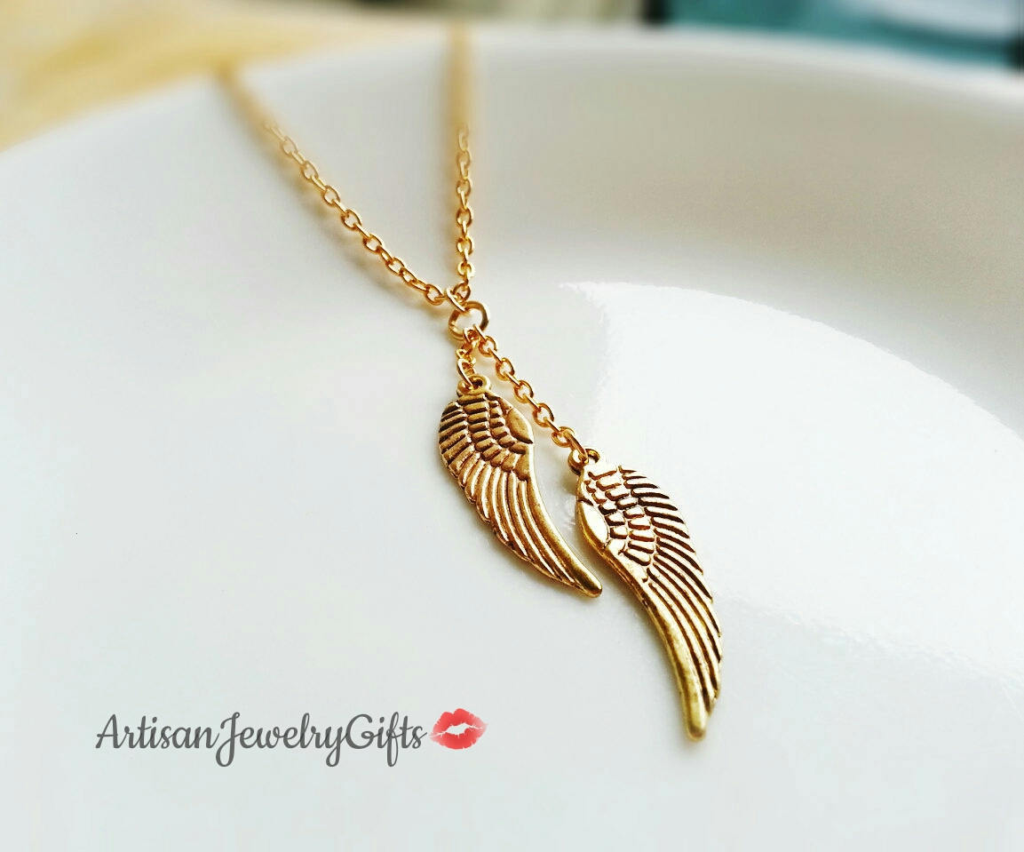 angel wing necklace gold