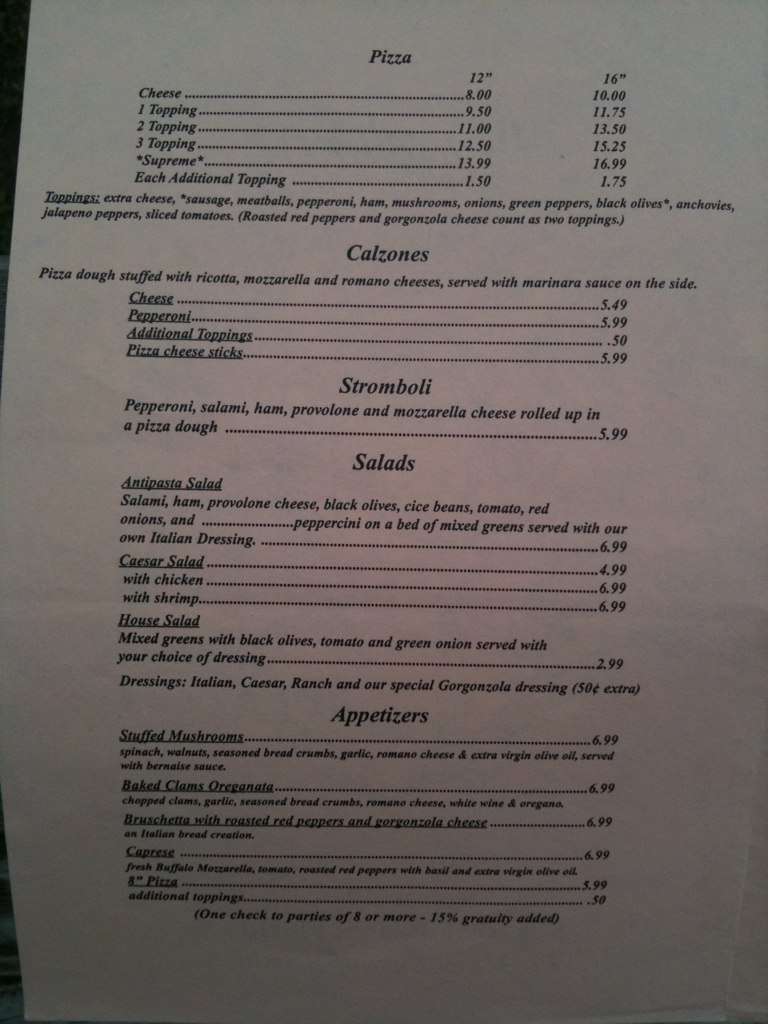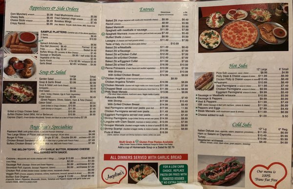 angelina's pizza menu