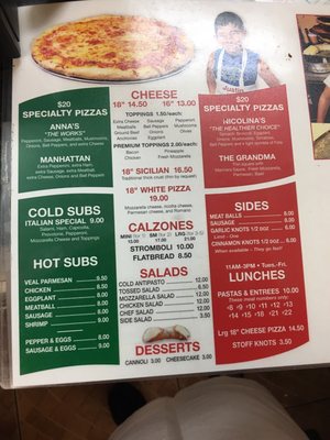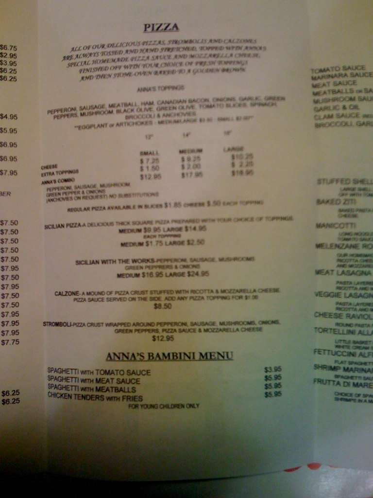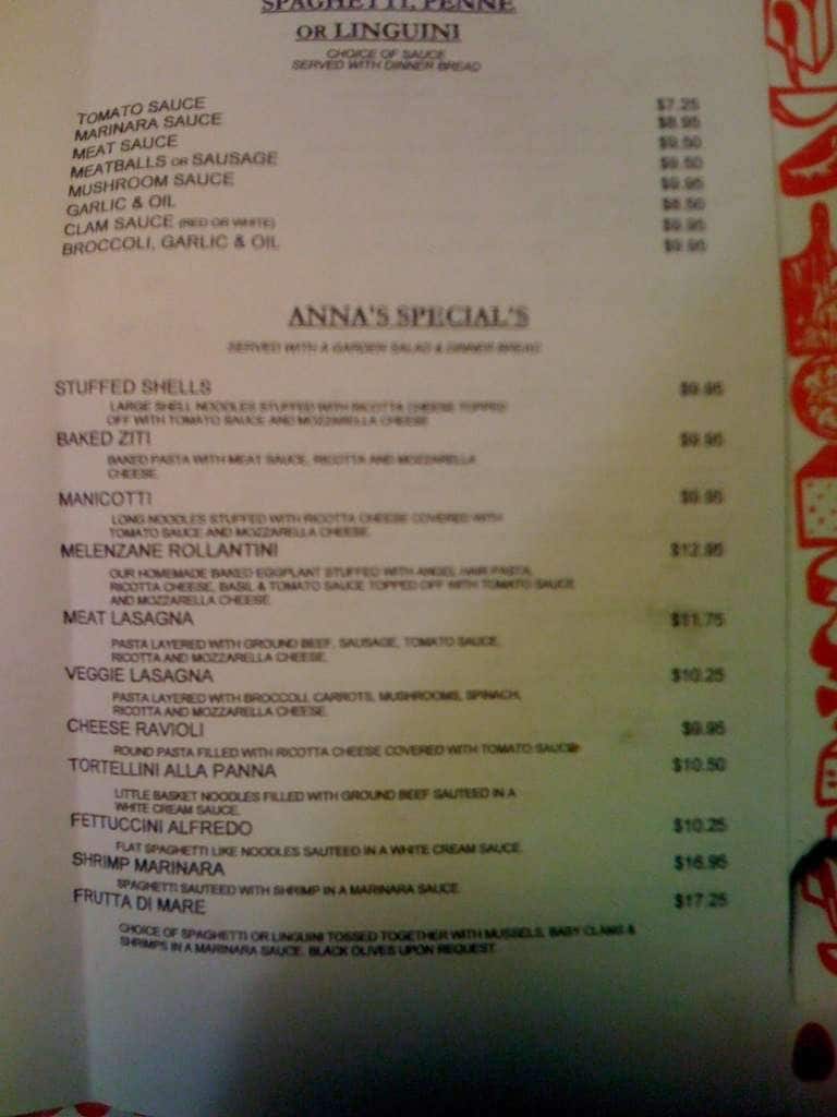anna's pizza menu