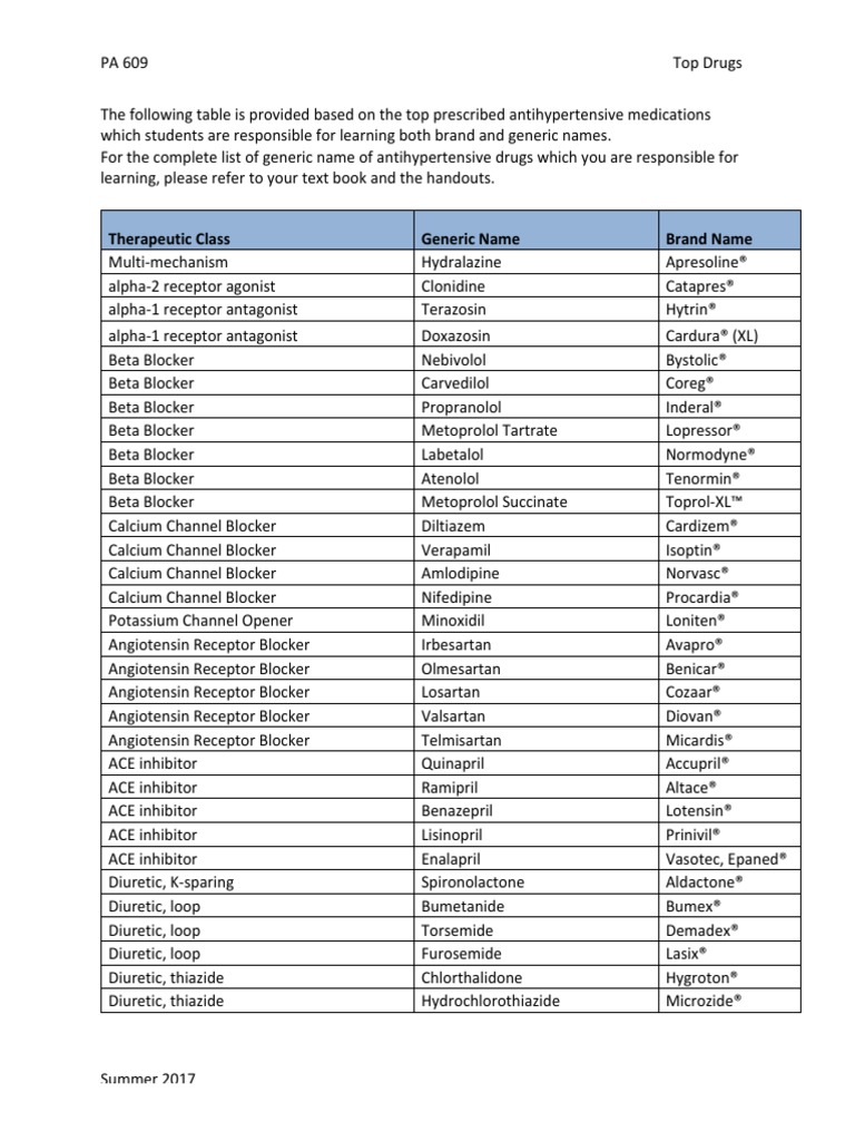 antihypertensive drugs list