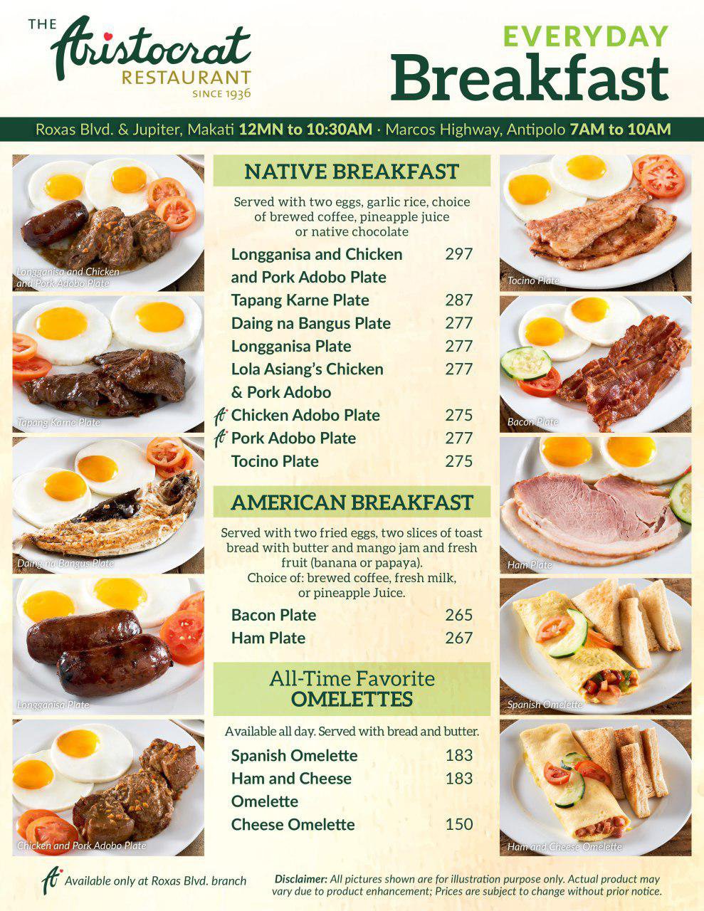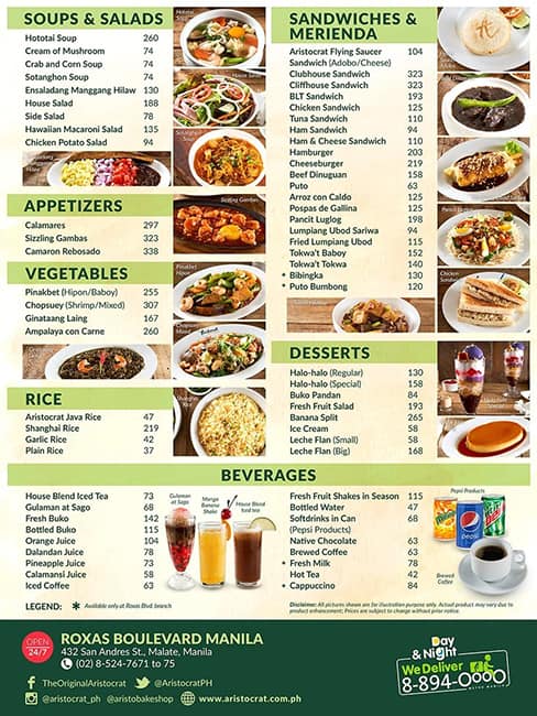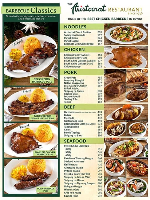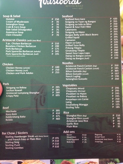 aristocrat menu