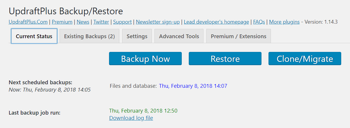 backup wordpress site