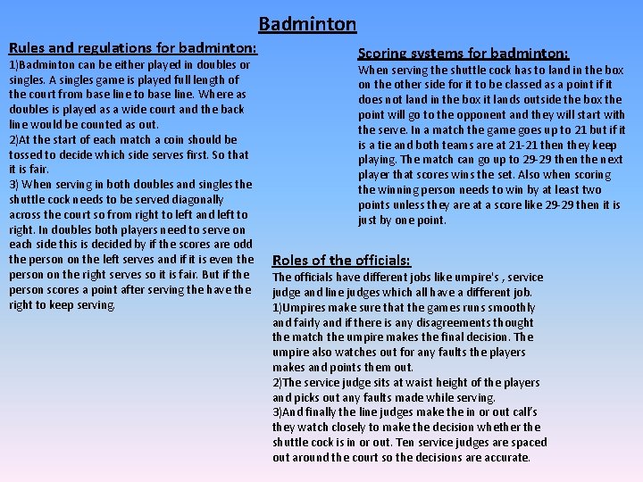 badminton rules and regulations