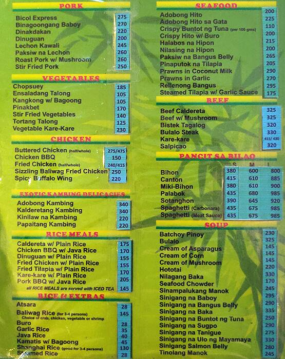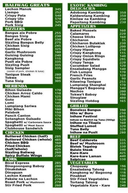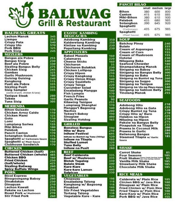 baliwag menu