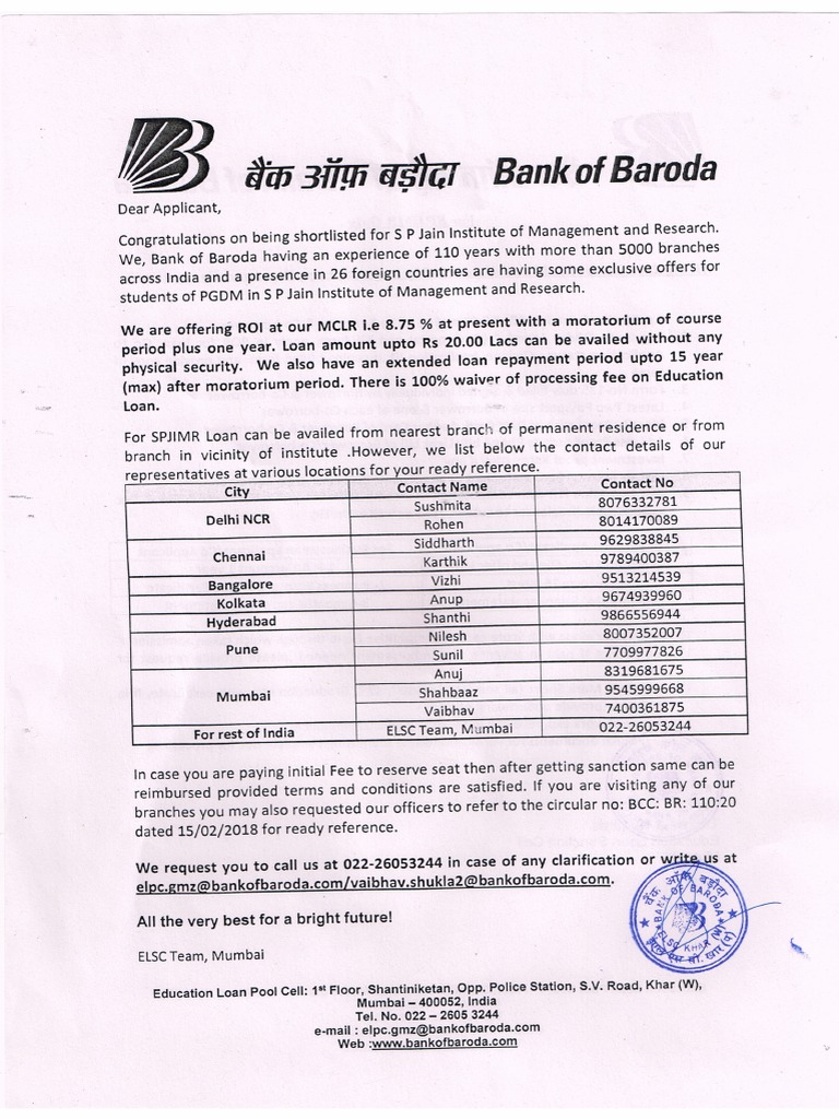 bank of baroda education loan