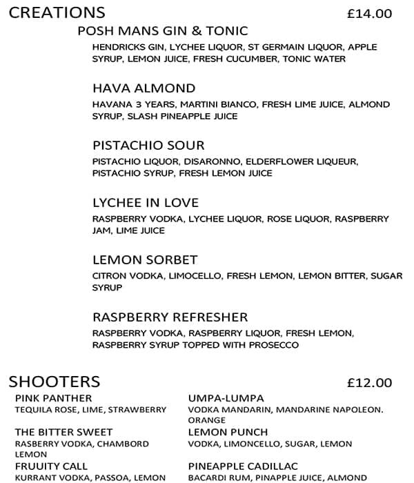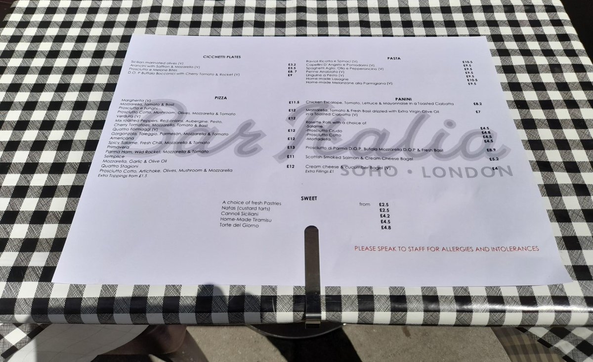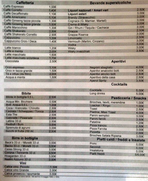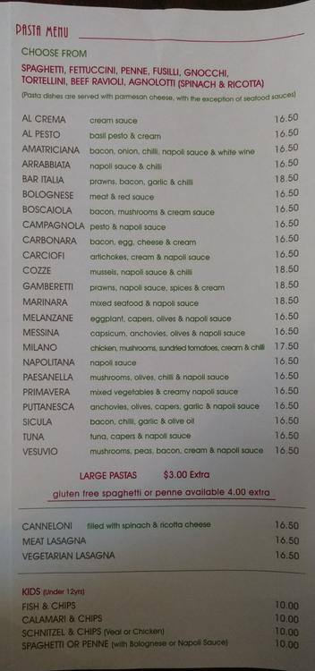 bar italia menu