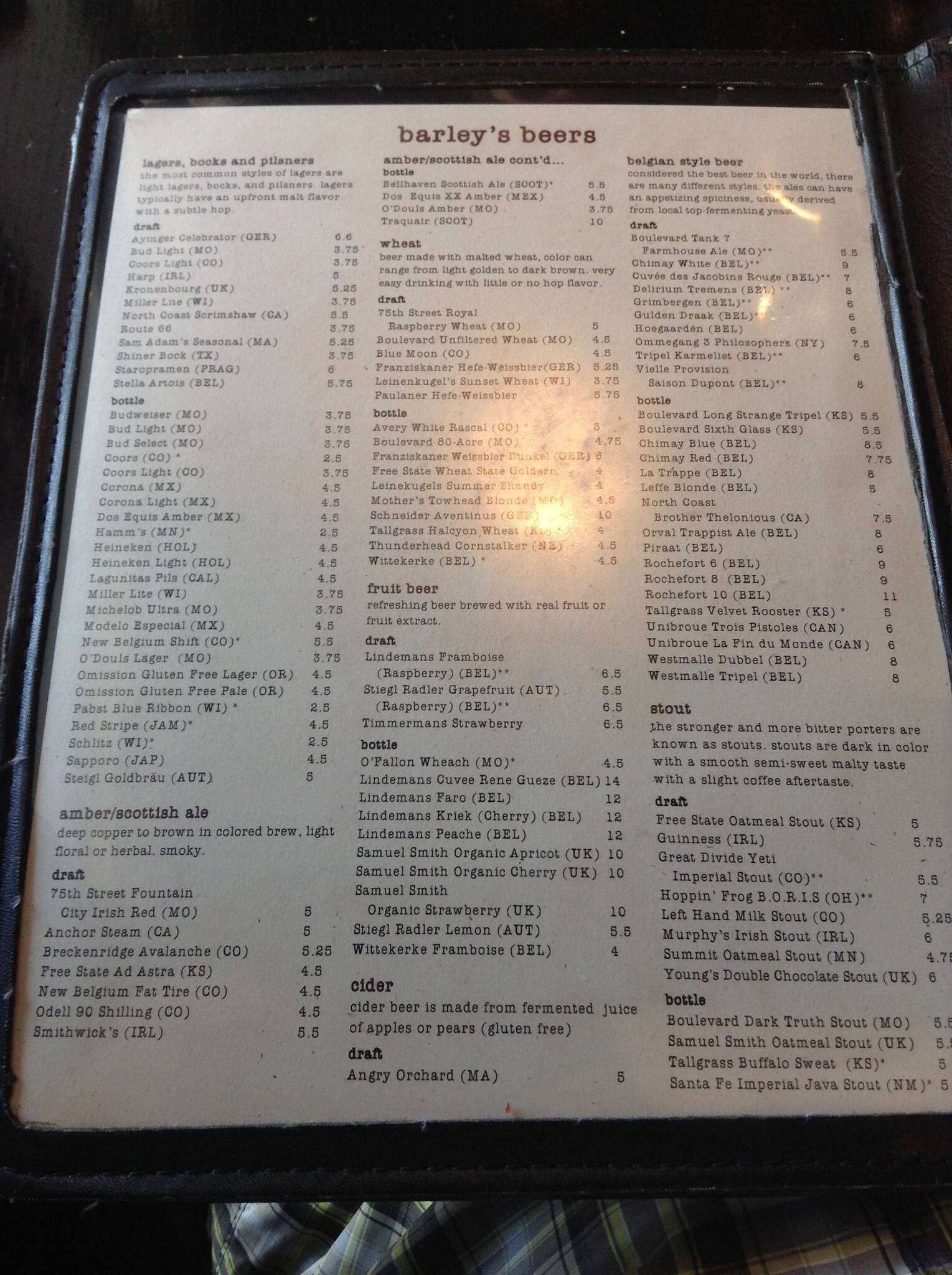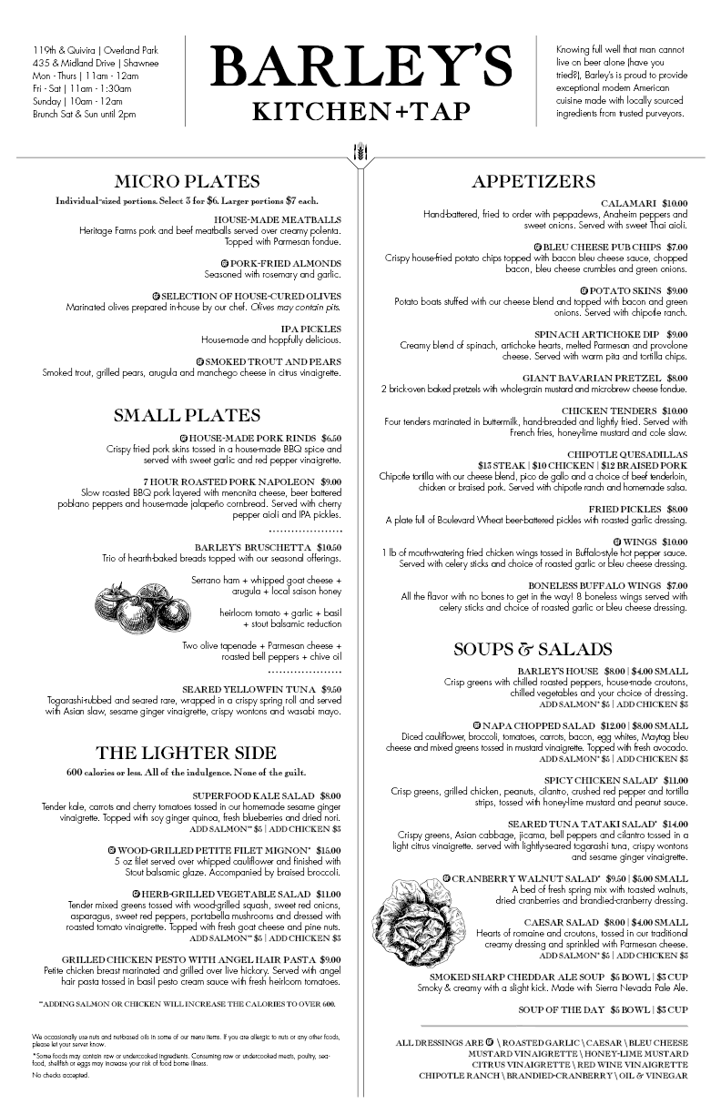 barleys menu