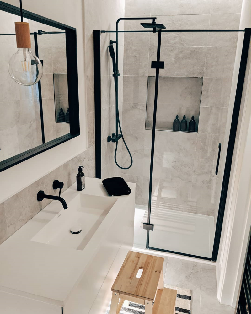 bath with black taps