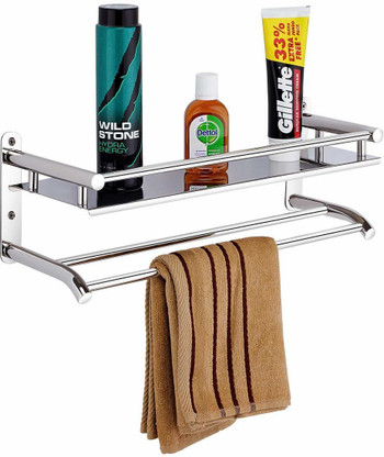 bathroom shelves with towel rack