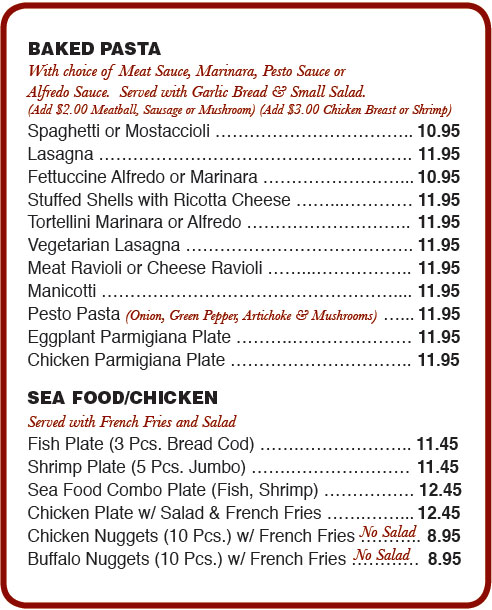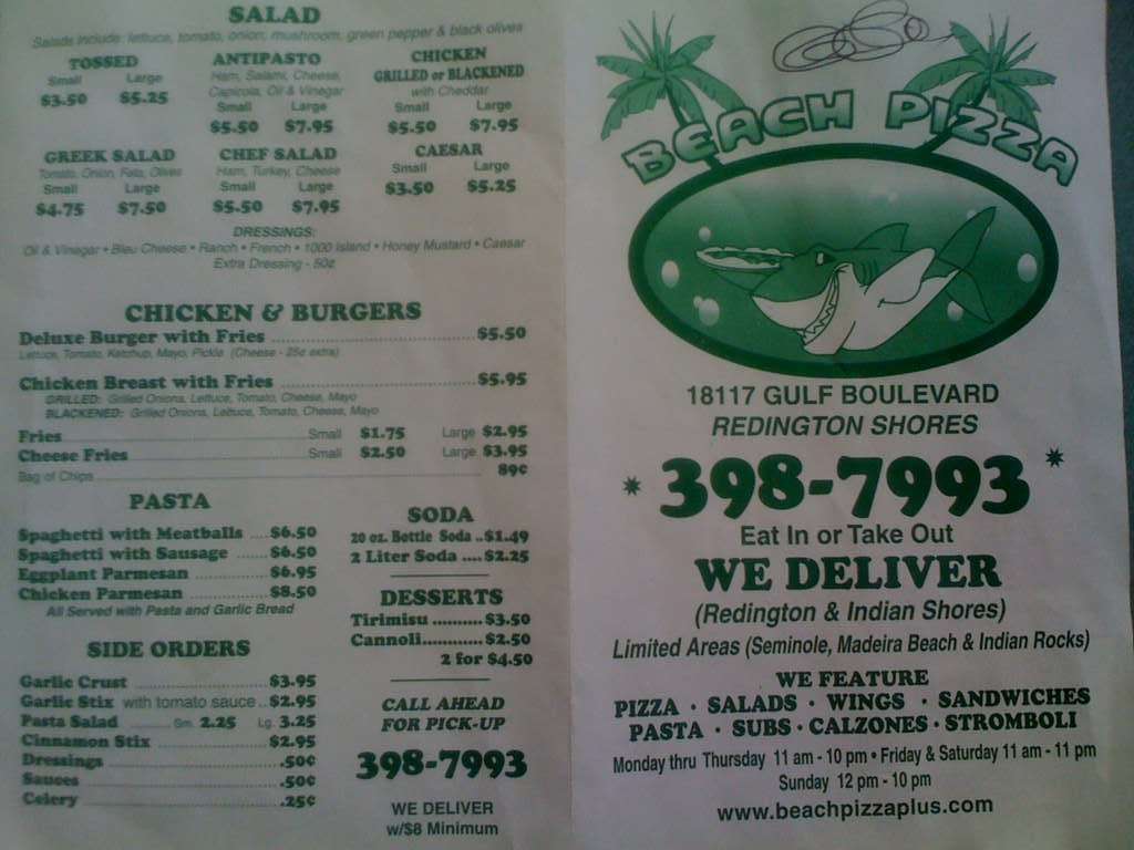 beach pizza menu