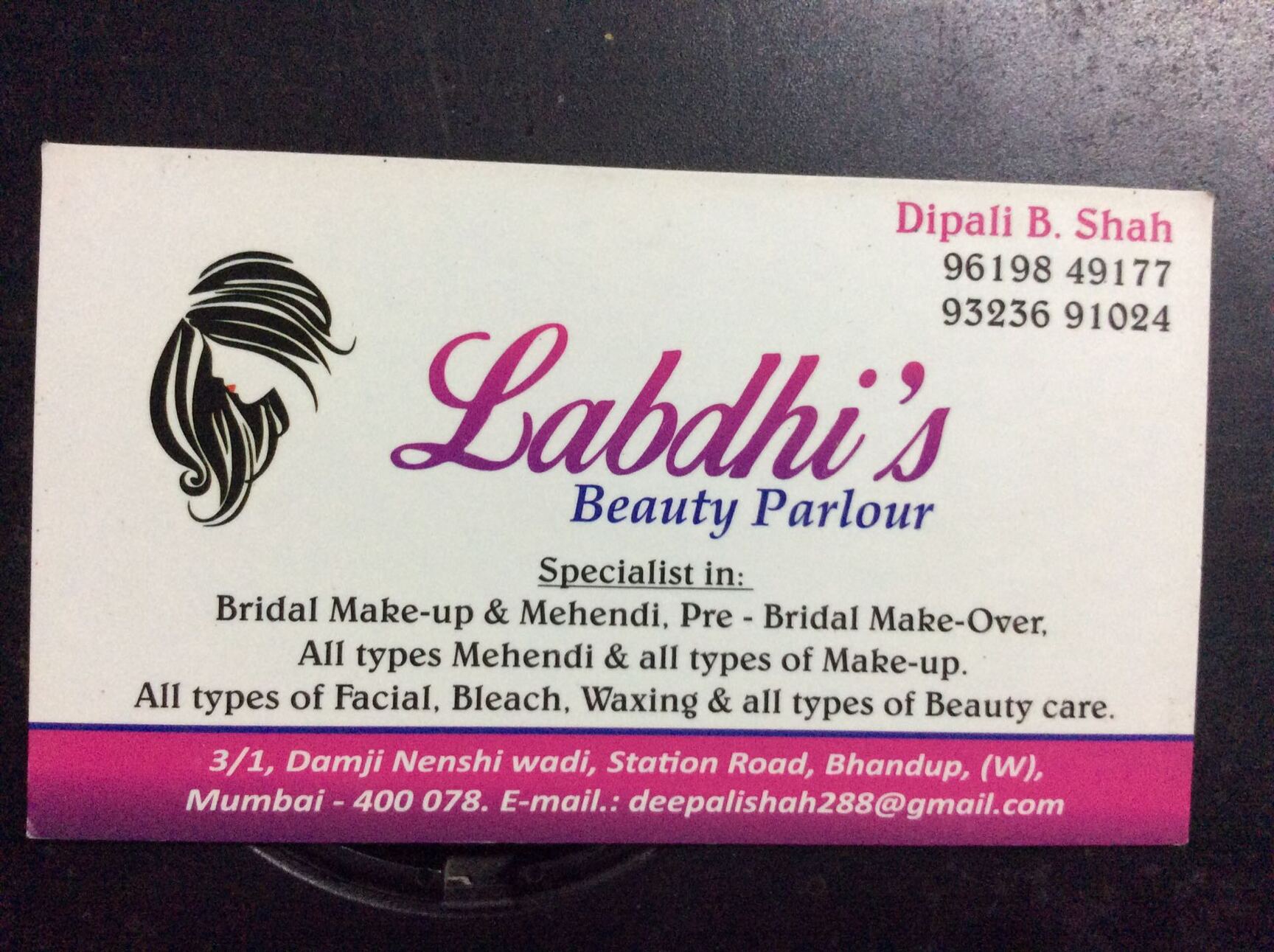 beauty parlour visiting card