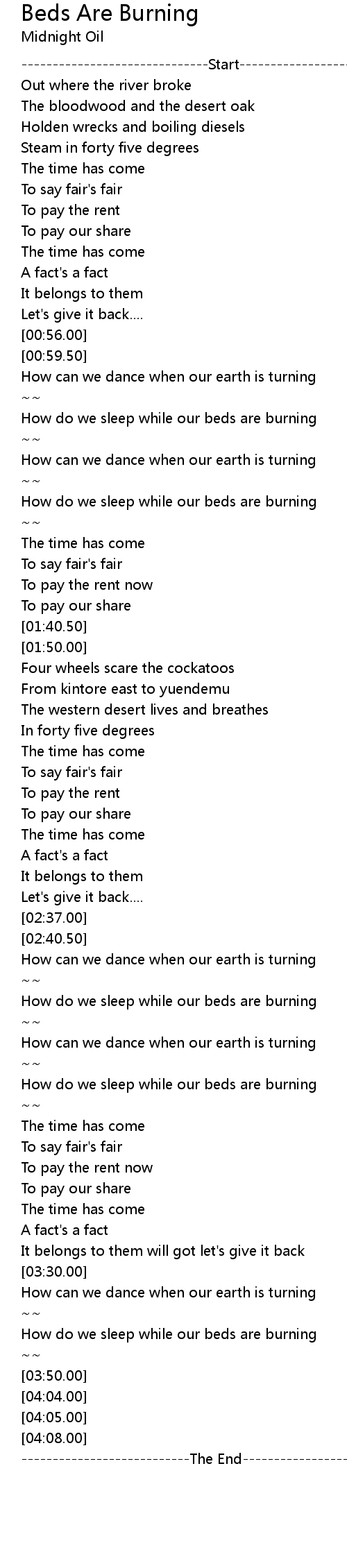 bed are burning lyrics