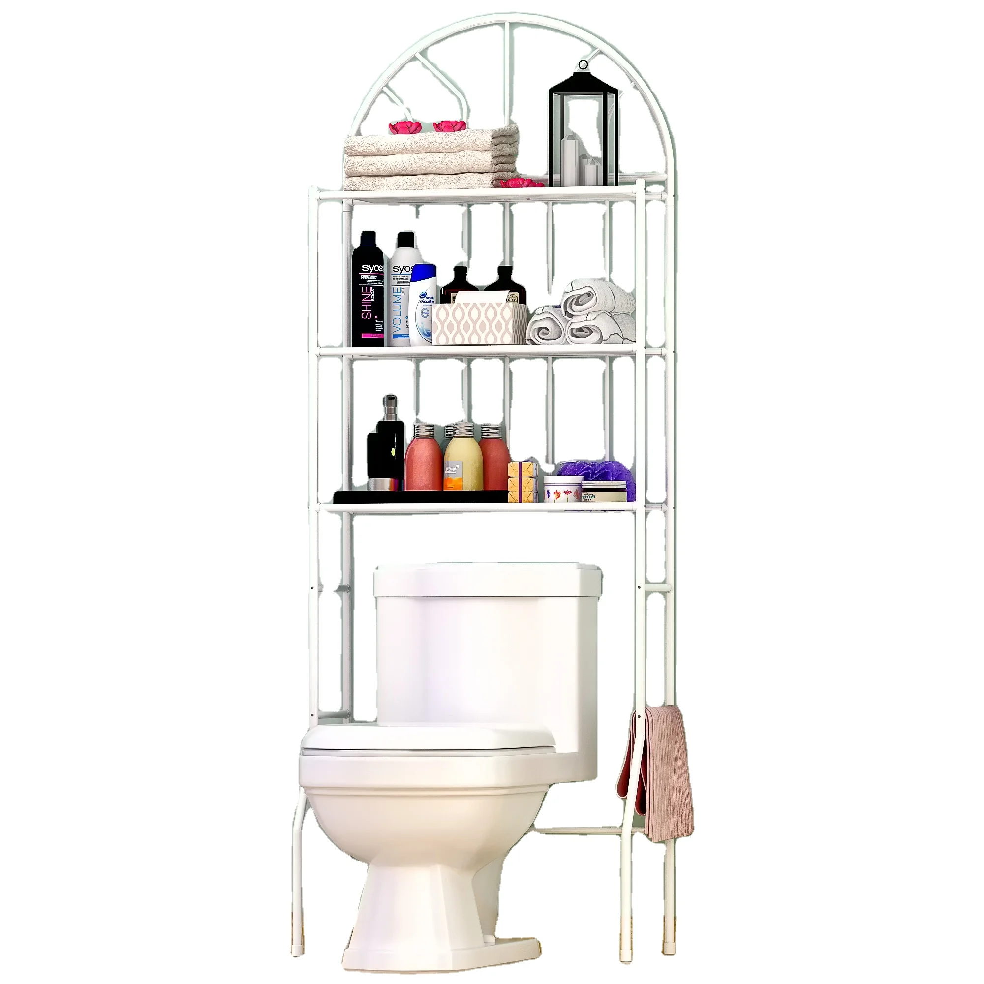 behind the toilet shelf