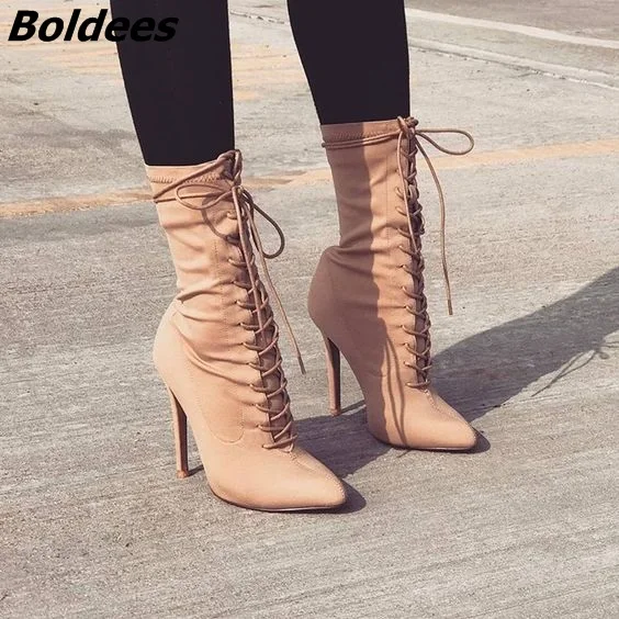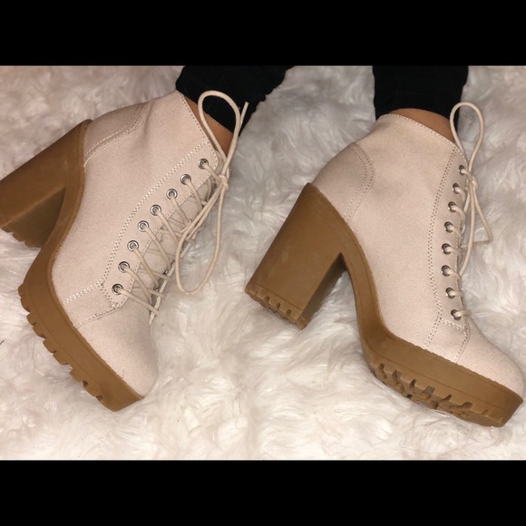 beige lace up booties