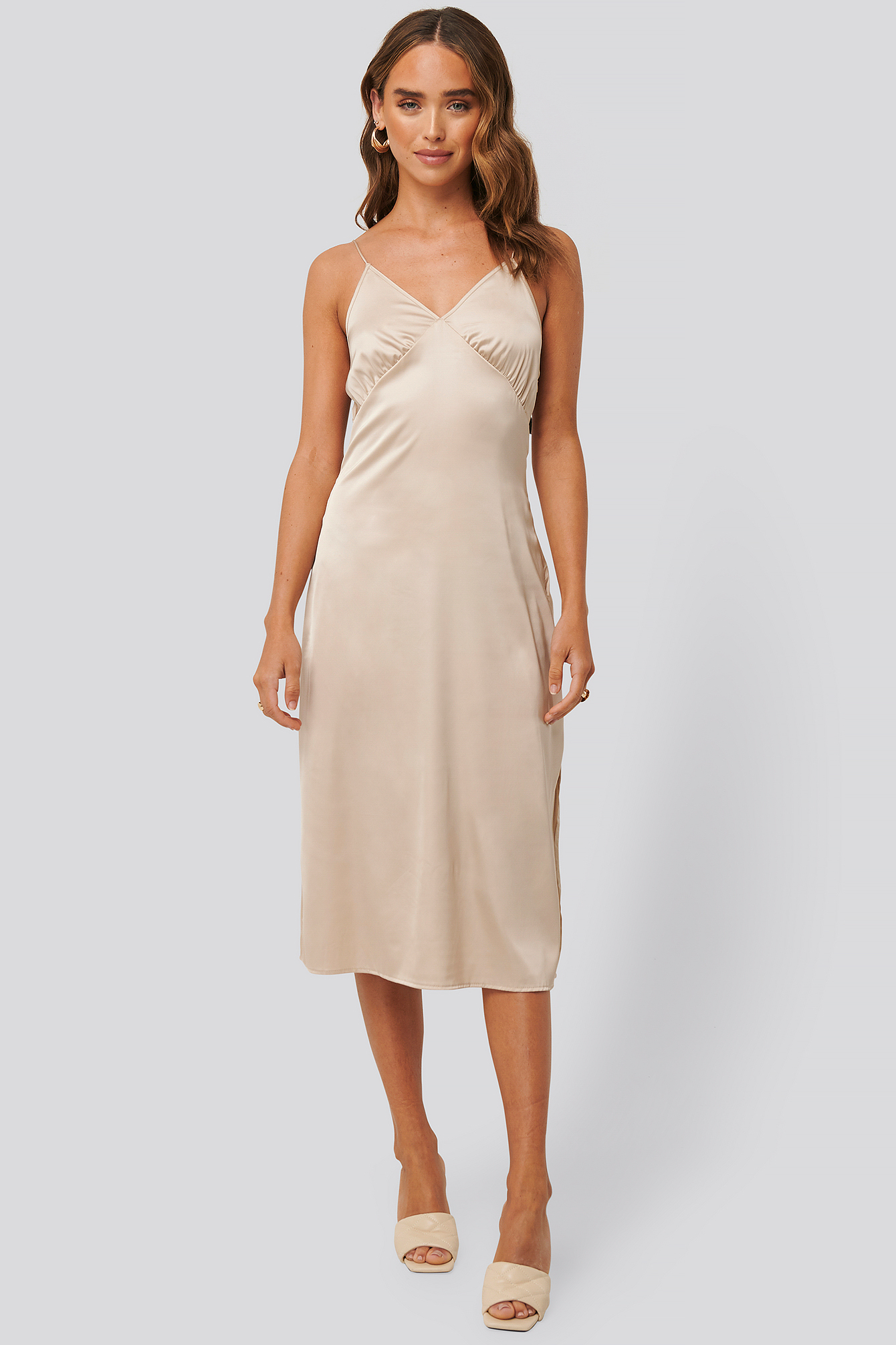 beige satin dress