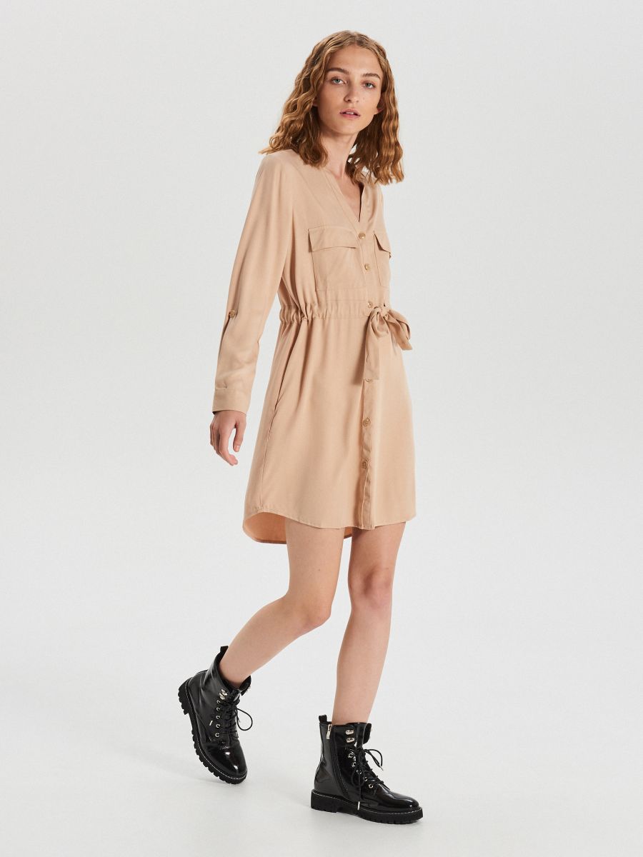 beige shirt dress