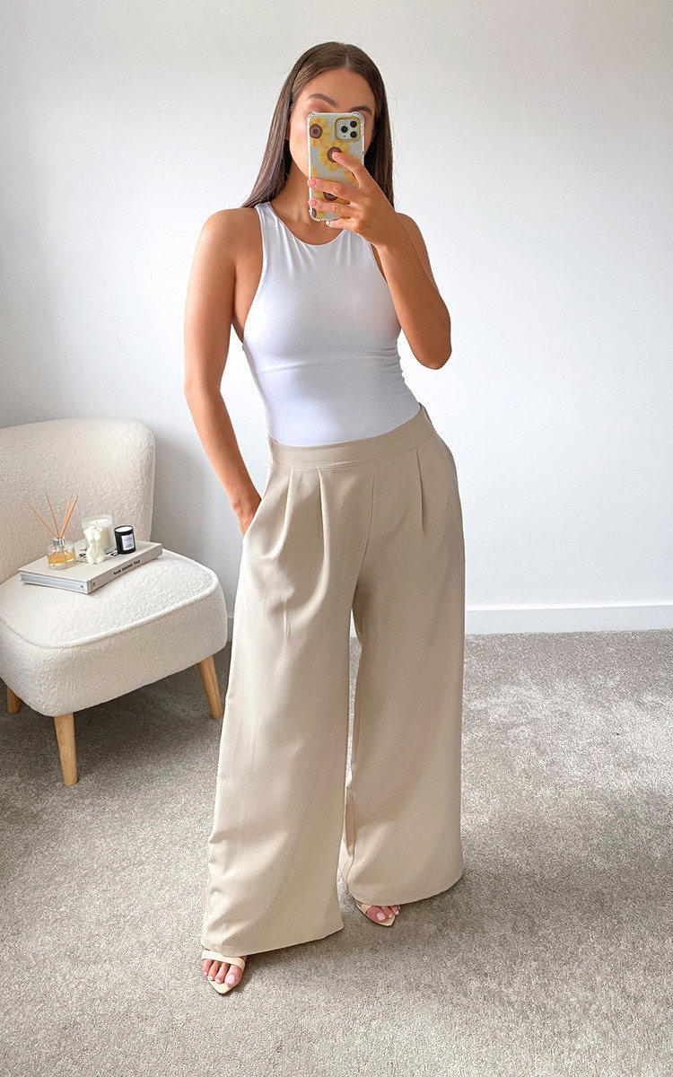 beige wide leg pants