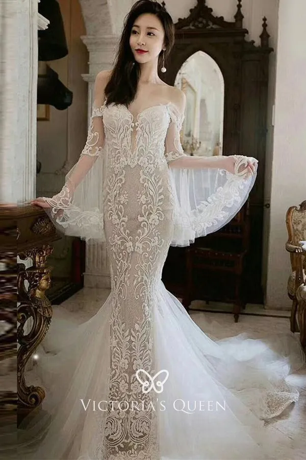 bell sleeve wedding dress