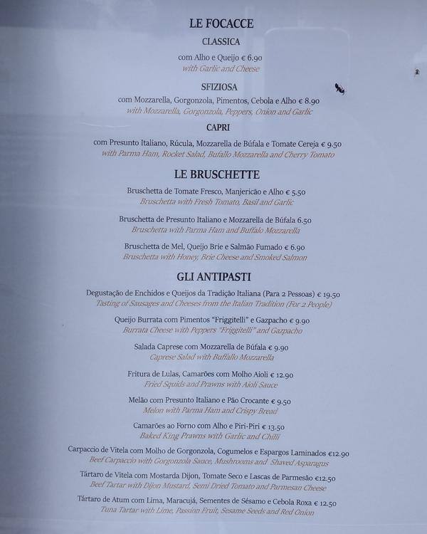 bella vita menu