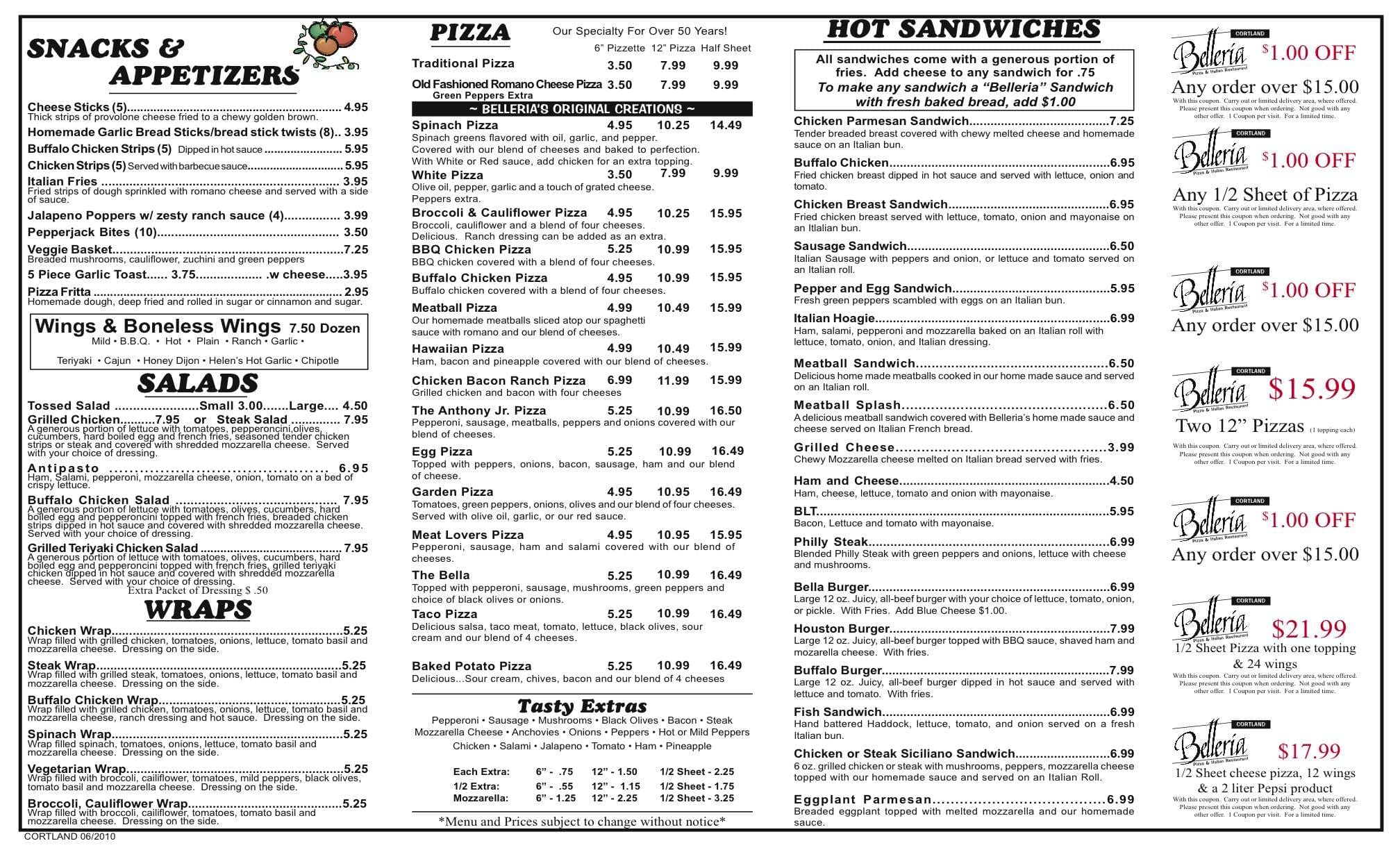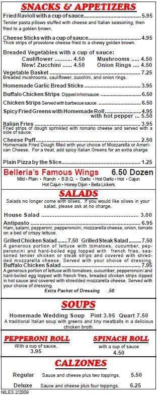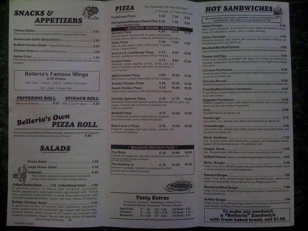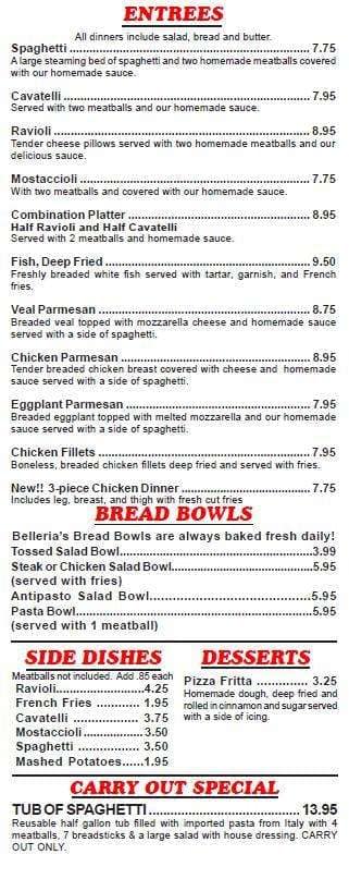 belleria menu