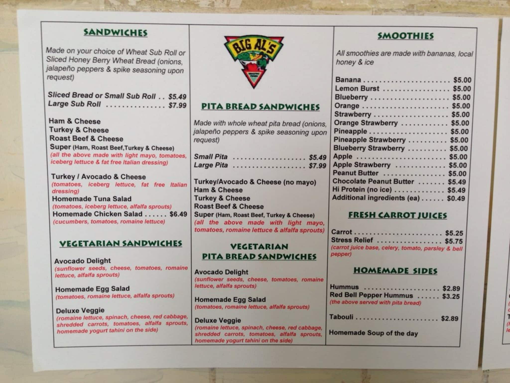 big al's menu